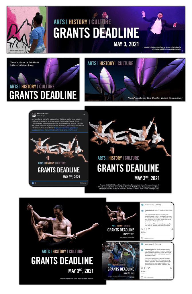 The grants are intended to support ongoing cultural projects, preserve jobs, and keep the doors open at thousands of cultural organizations that boost the economy and creative life of communities were promoted via social, blasts, and the website.