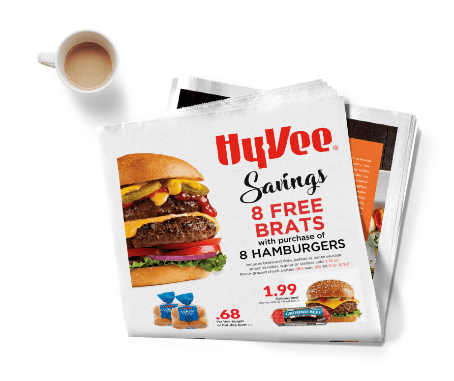 Following Hy-Vee’s branding guidelines, I created a tasty cover for the Hy-Vee Circular Insert. I placed the juiciest burger image I could find at the top of the page. As an avid griller, the idea or 8 free brats had me envisioning dancing brats hence the footer of this cover had a dancing brat feel.
